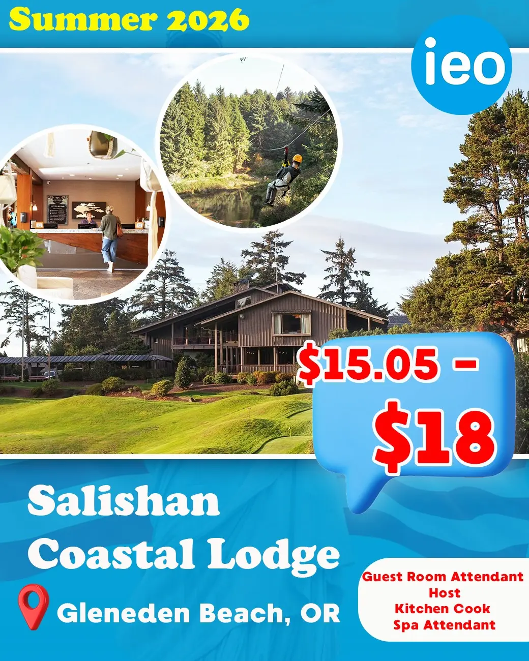 **Participants will live in lodge rooms at Salishan Coastal Lodge. Each room will house one or two participants. Rooms have one bathroom, a microwave, a mini refrigerator, 2 beds, and other basic furniture. There is no traditional stovetop or oven available, but a toaster is available for use in the Employee Dining room. After guest hours, participants will also be able to use the gym and the tennis center area with televisions. Laundry facilities are available for use in the Tennis Center. There is a minimum $250 cleaning fee if participants violate the housing agreement. Exact cost to be determined by the housing manager.